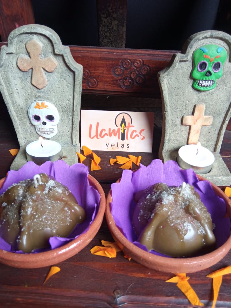 El tradicional pan de muerto hecho en vela aromática.